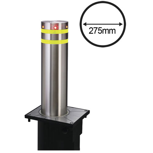 Pilona o Bolardo Neumático / 100% Acero Inoxidable / Alta Velocidad / 275MM Diámetro / Acabado de Lujo.